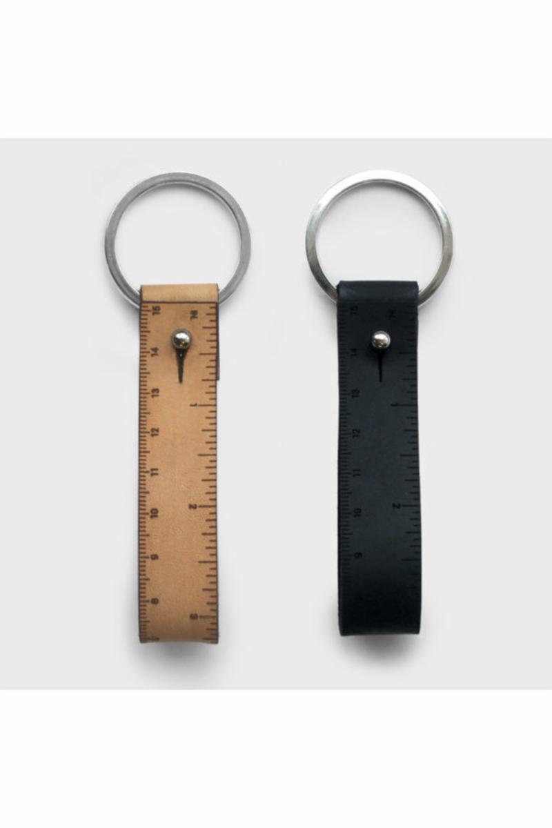 Wristruler fob ruler keychain i skinn 15cm. Farge natural (til venstre)
